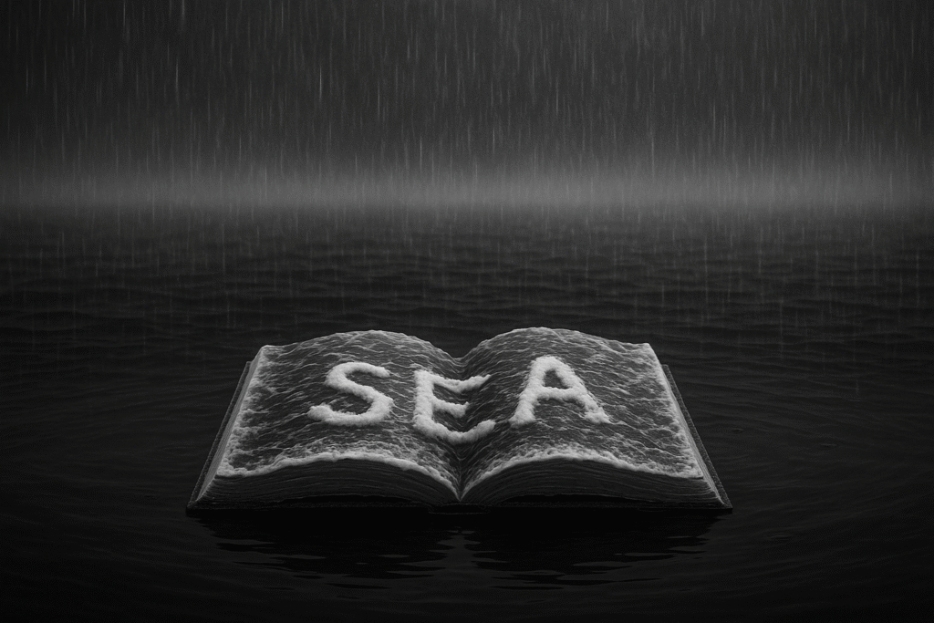 At the center of the eye a platform of black water rose, convex as a lens. It held a thing shaped like a book made of sea: pages of thin dark, writing in foam, the spine a line of cold. It smelled like anchors that had never held.