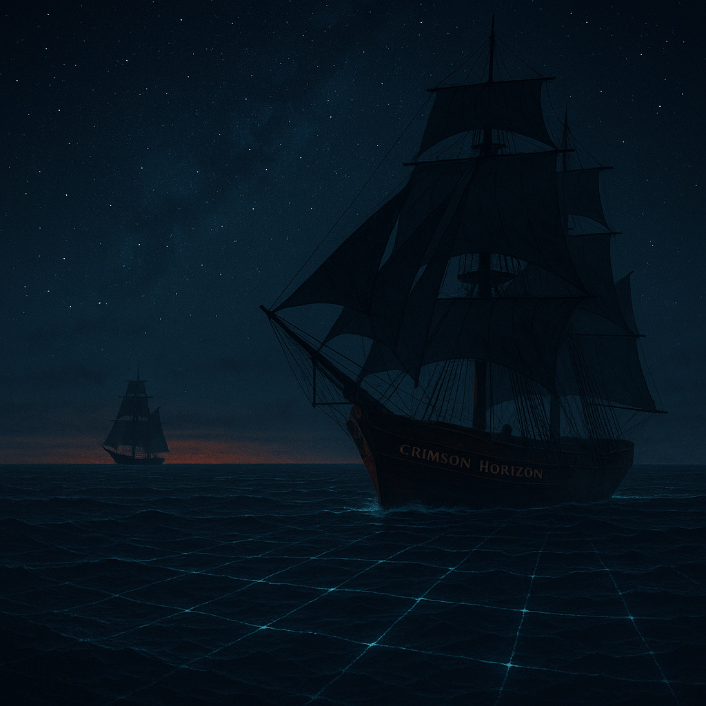 Briggs looked down anyway—because he is the sort of man who inspects the drop before he steps across it. Beneath the runner the grid showed what it had stored: ships paused mid-broach, gulls held like cut paper, a boy not much younger than Finn reaching for a rope that would never answer. The bosun blinked salt out of his eyes and looked away.