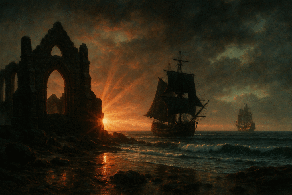 The Santa Lucía fell in astern, formal as church. Valdés watched with a face you could cut rope on. The abbey’s shadow lifted its hand, and the sun stepped off the arch like a king finished with an audience.