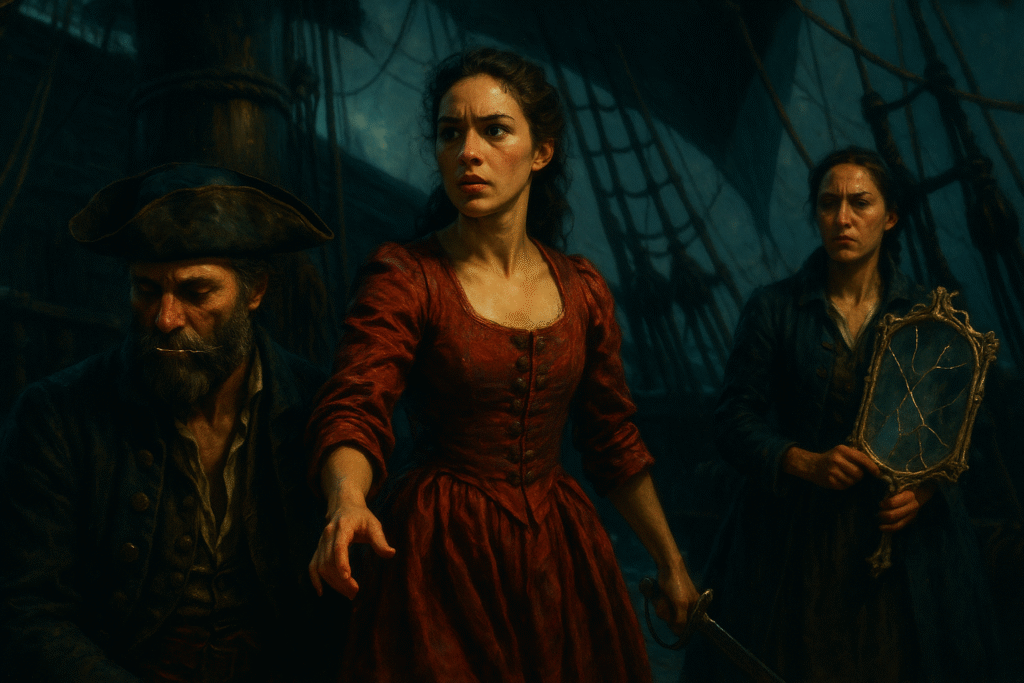 The Santa Lucía’s launch nosed into the court as if invited by the sea itself. Valdés stood in the bow, cloak quiet. In her hands, the cracked Ash Mirror waited like a verdict.